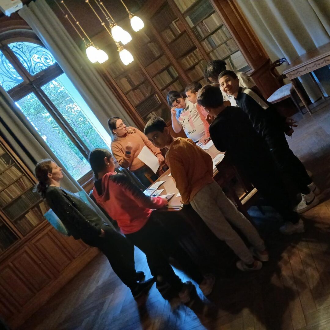 Le Collectif Misfits a travaillé avec des élèves de 4ème du collège Jean Moulin, en leur proposant des séances d’écriture, d’enregistrement, mais aussi de recherche et de collectes d’archives, pour mieux connaître la famille Vermorel, leur impact sur la ville de Villefranche et l’époque où ils vivaient.